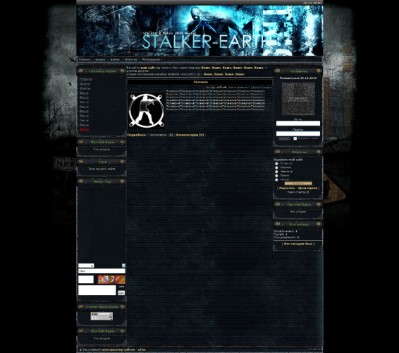 | Название шаблона: Шаблон stalker-earth Конструктор: Нету Автор дизайна: z3feaR Комплектация: форма входа, вид материалов, PSD шапки Размер: 10 мб ( из за PSD шапки) | |